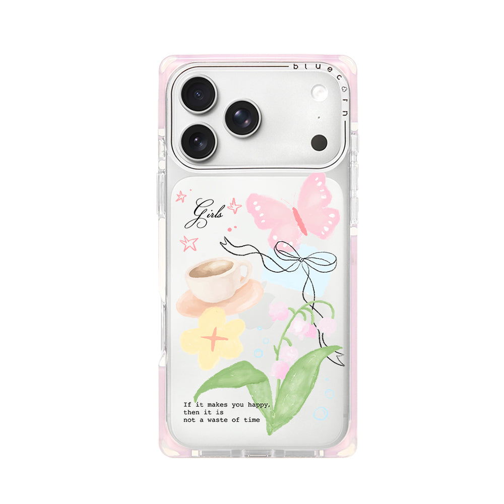 ⨠Healing hand-drawn aesthetics: Watercolor-like flowers, butterflies, and coffee cup patterns, paired with a gentle pink and white contrasting border, capture the romantic charm of spring in your hands.